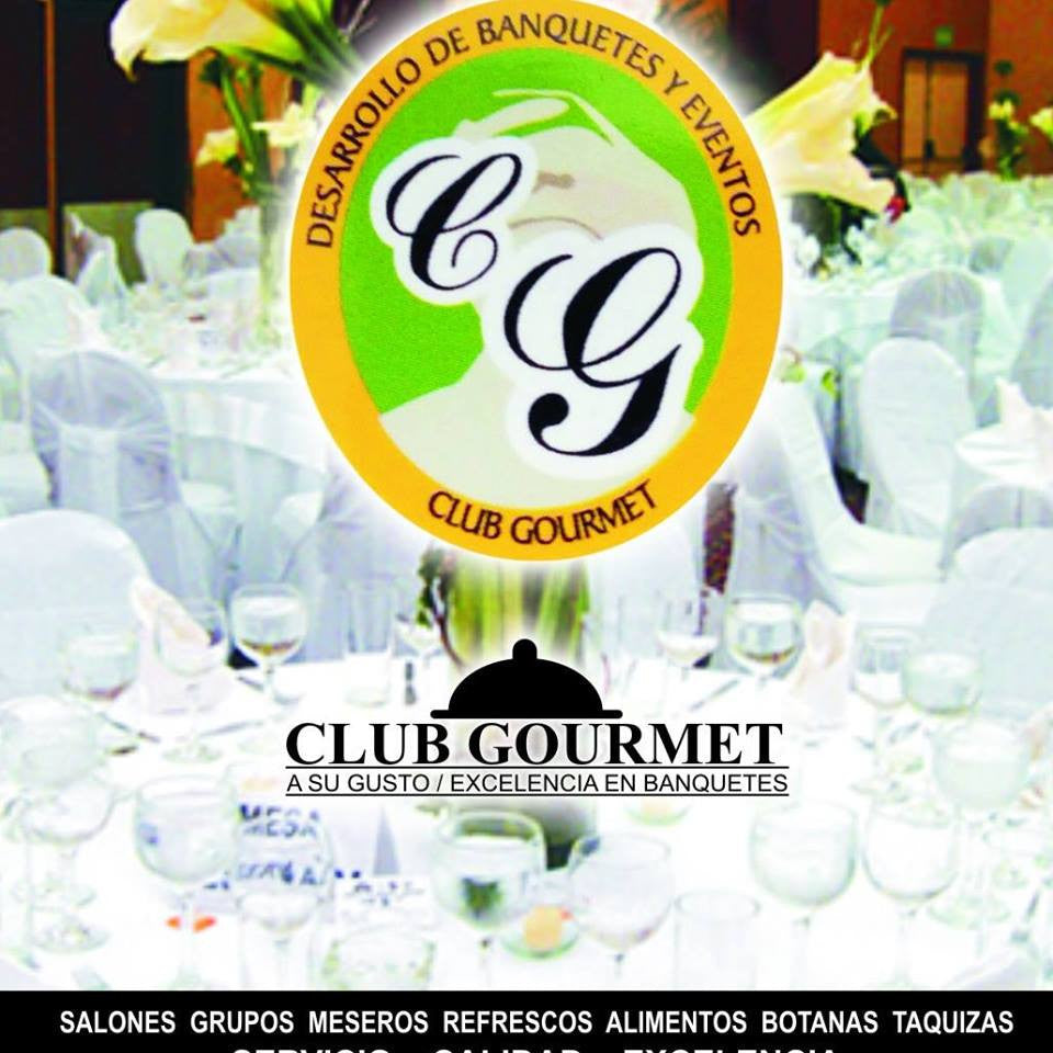 Club Gourmet se pone a tus ordenes en todo tipo de eventos, de fin de año ,bodas, bautizos, graduaciones, XV años, cumpleaños, posadas visitanos y pregunta por nuestras promociones tenemos sugerencias y propuestas en alimentos como: taquiza, parrillada, botanizas, bocadillos, contamos con meseros, capitán de meseros, personal de cocina, salones, jardines, fincas, palapas, refrescos, hielo, mobiliario, manteleria, loza, cristalería y nuestra variada barra de cóckteles.